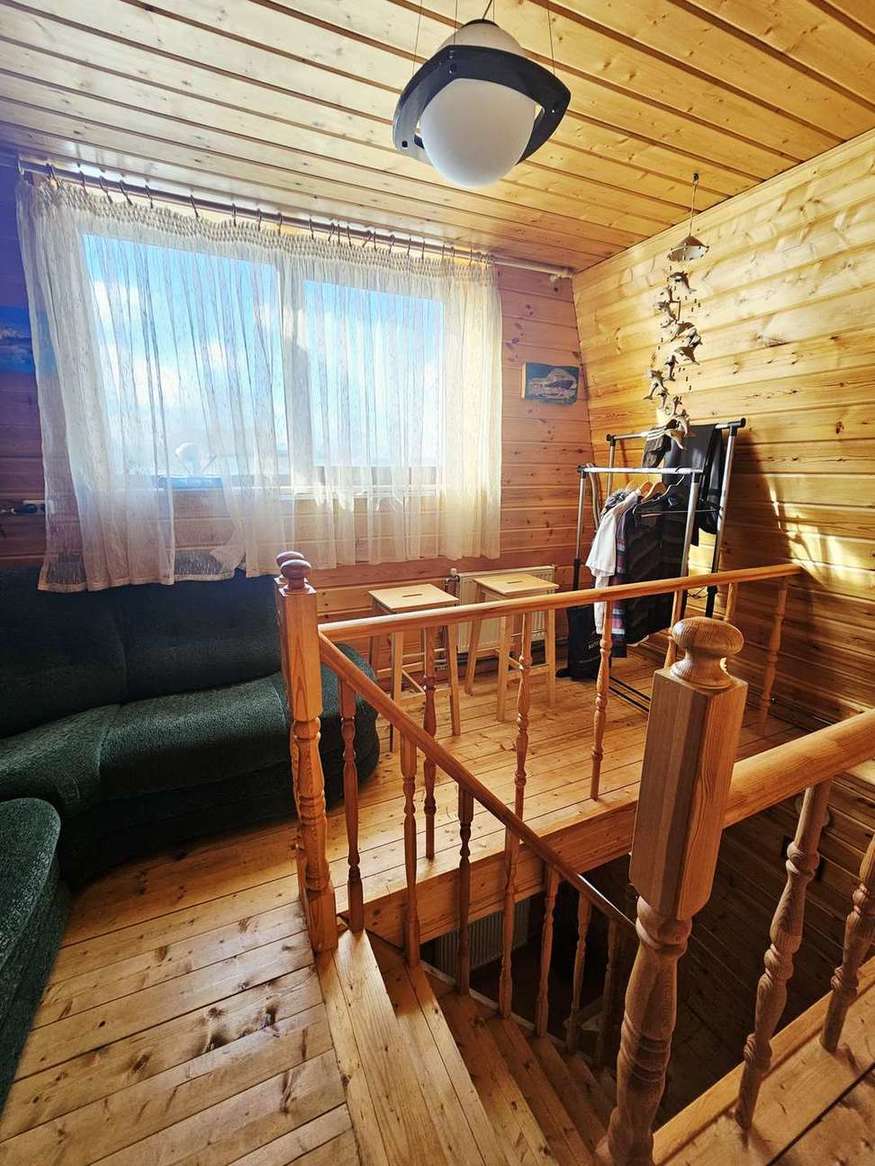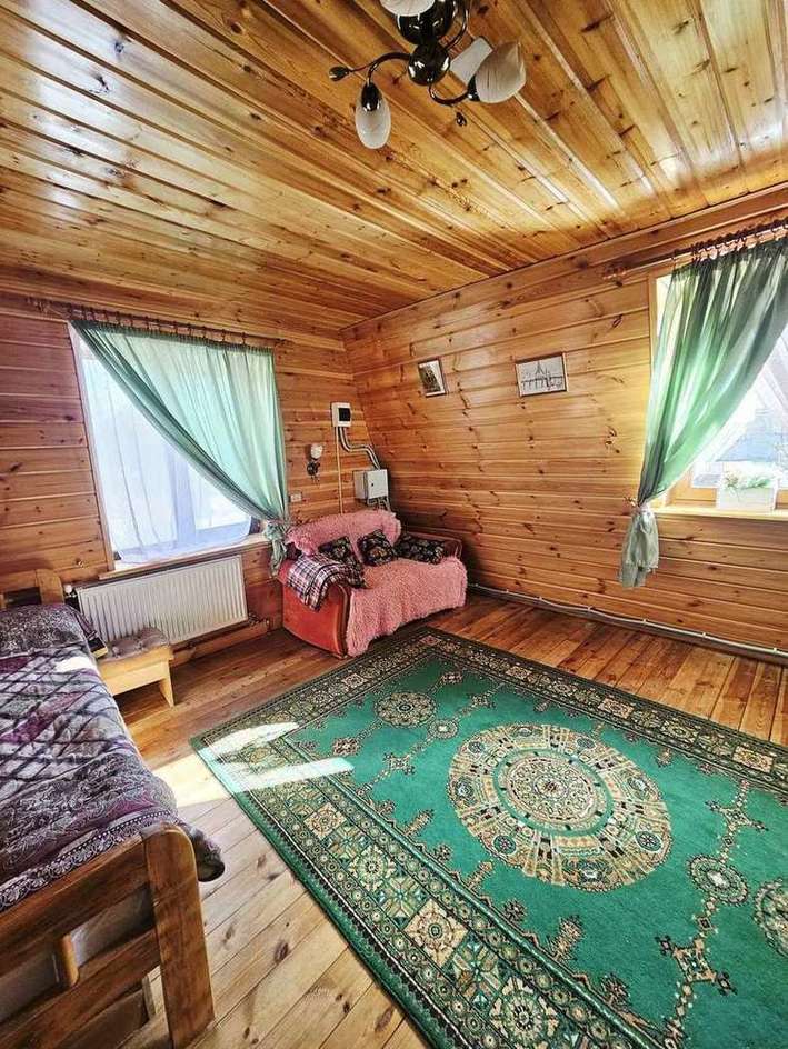 -Материал стен: каркасный, минеральный утеплитель на 150 Отделка снаружи деревянный сайдинг блок-хаус, внутри рау-хаус. Карельская сосна, покрыта антисептиком на 2 слоя