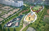 На территории комплекса появится детский сад с бассейном на 350 мест и школа с двумя бассейнами и стадионом на 825 учеников.