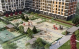 Первый этап строительства включает 5 очередей. Дома первого этапа образуют единый закрытый от машин двор. Здесь появится пешеходный бульвар и уютный арт-сквер в форме звезды. На первом этапе застройщик также возведет два детских сада, детский клуб и дворы-патио с зонами отдыха.