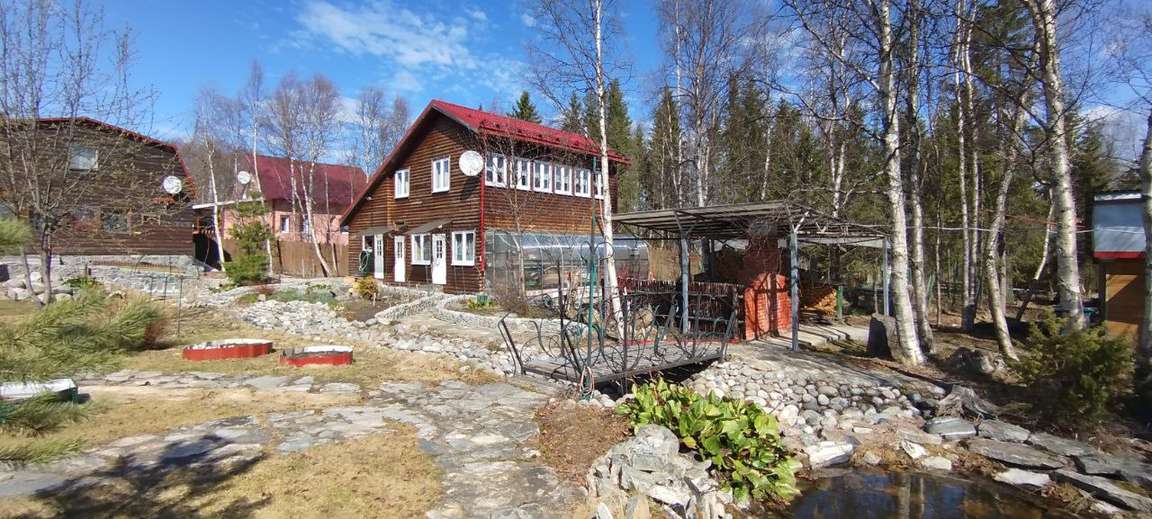 А также на участке размером 1588 кв.м есть: двухэтажный жилой дом, баня, двухэтажный дом с пристроенной к нему теплицей, пирс, отдельно стоящая постройка, используемая под мастерскую/кладовую, три электрогенератора.