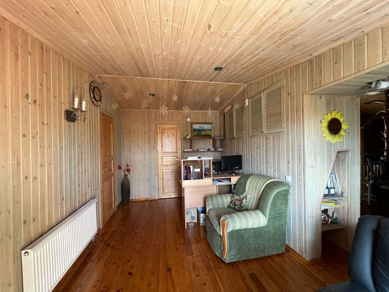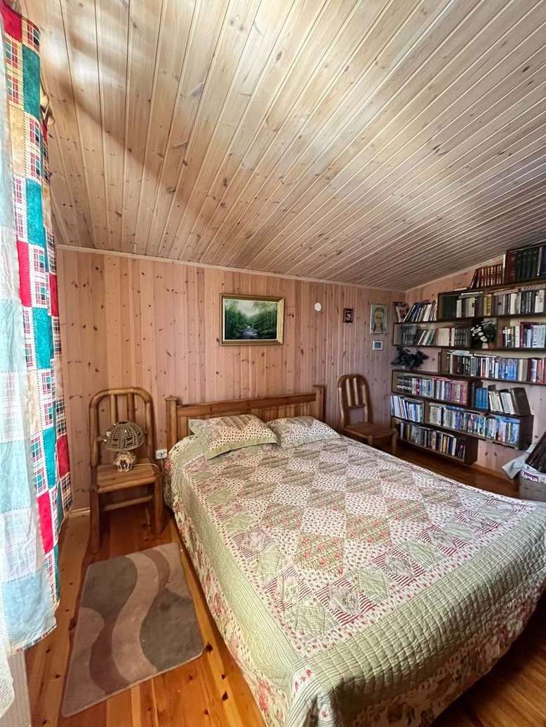 На втором этаже дома ещё две спальни, два кабинета, гостинная, две гардеробные, санузел, балкон, с которого открывается красивый вид на участок и реку. Лестницы и и почти вся мебель сделаны на заказ либо привезены из Финляндии.