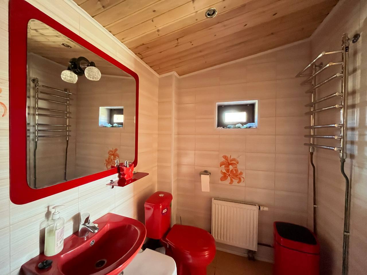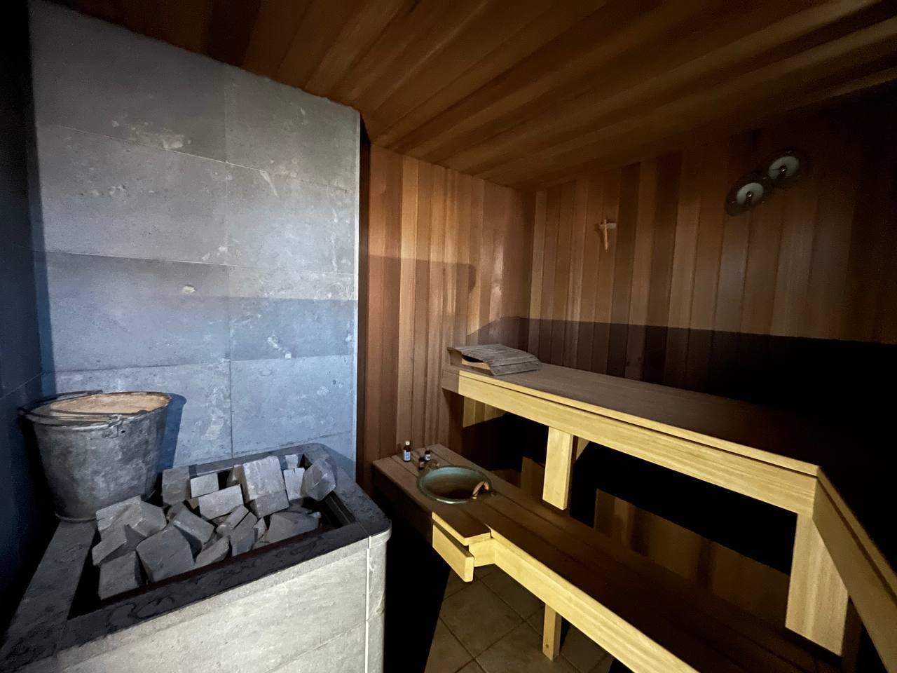 Сауна отделана канадским кедром и липой, печь также финского производства из талькохлорида.