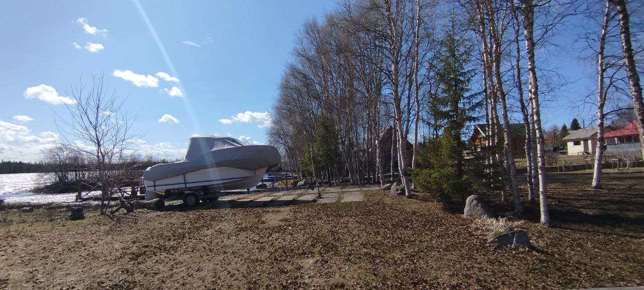 Участок спускается к берегу Туломы с причалом.