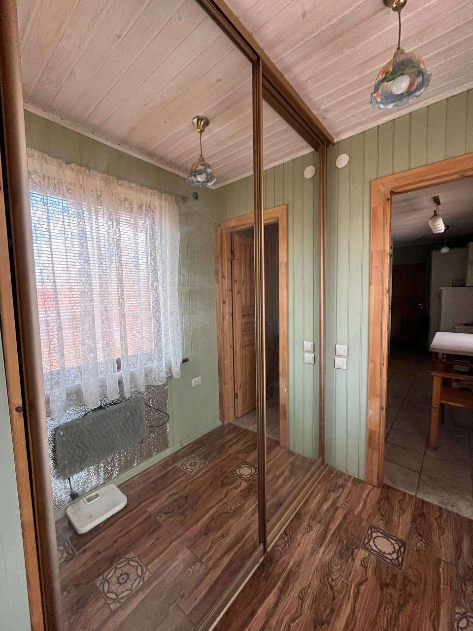 Жилой дом построен из сэндвич-панелей, фундамент - плита, стены отделаны ролл-хаусом, крыша из металлочерепицы. Стеклопакеты в доме из натурального дерева со встроенными между рамами жалюзи. Дом отваливается электрическими радиаторами, а также на первом этаже тёплый водяной пол.