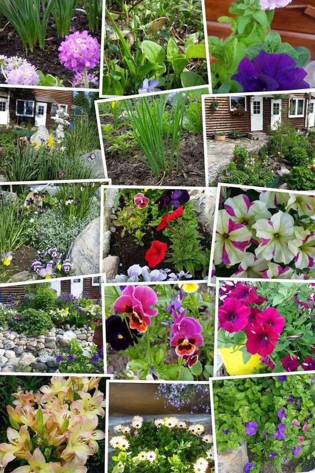 На участке растут яблоня, ели, горная сосна, кедр, лиственница, пионы, нарциссы, тюльпаны, лилии, календула, анютины глазки, кусты смородины и малины, а также овощные грядки.