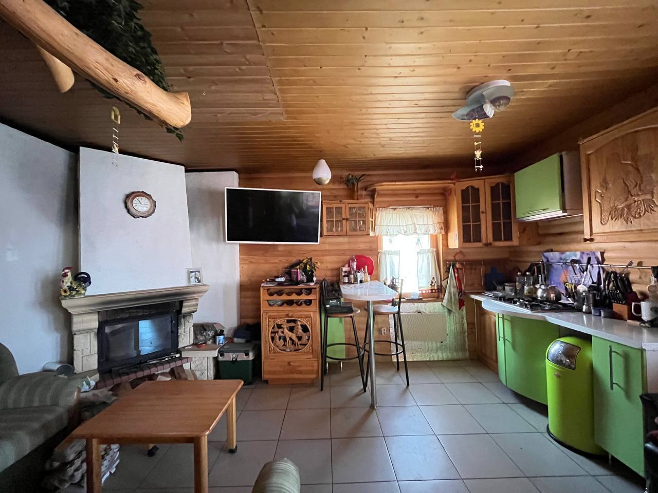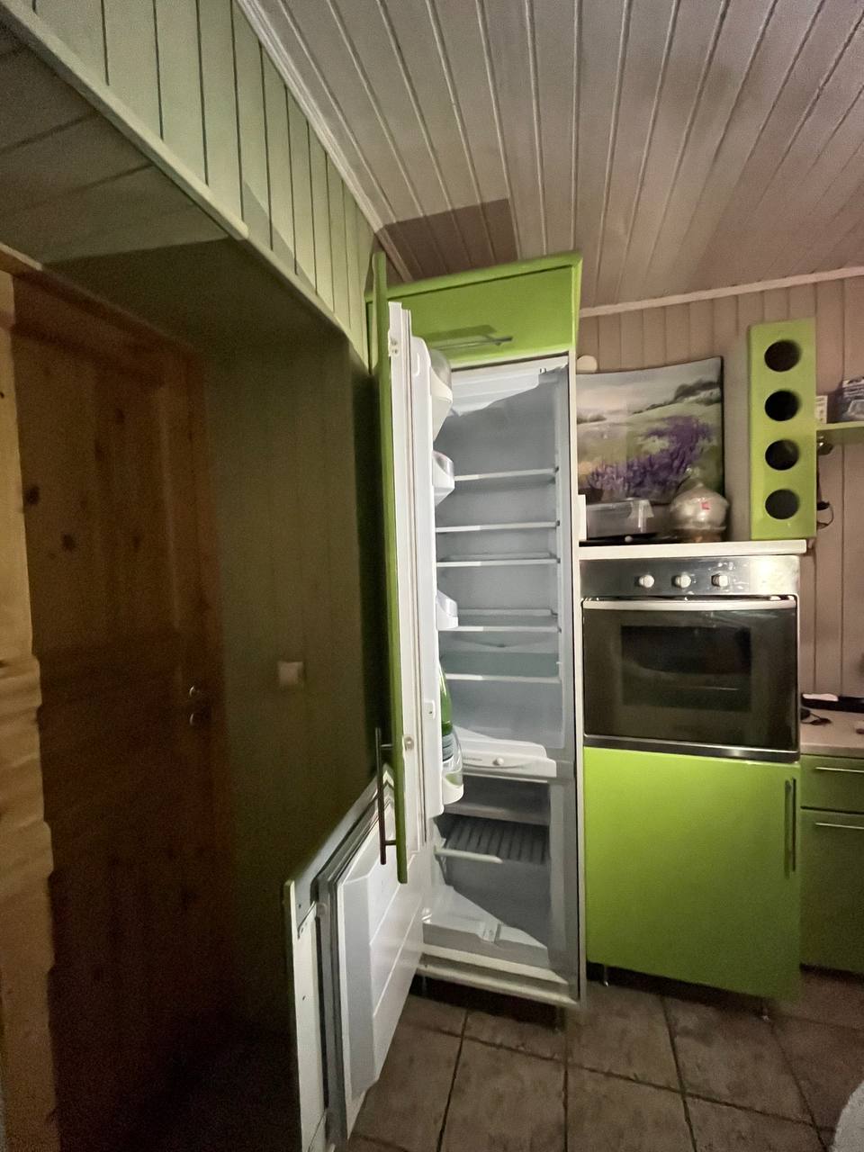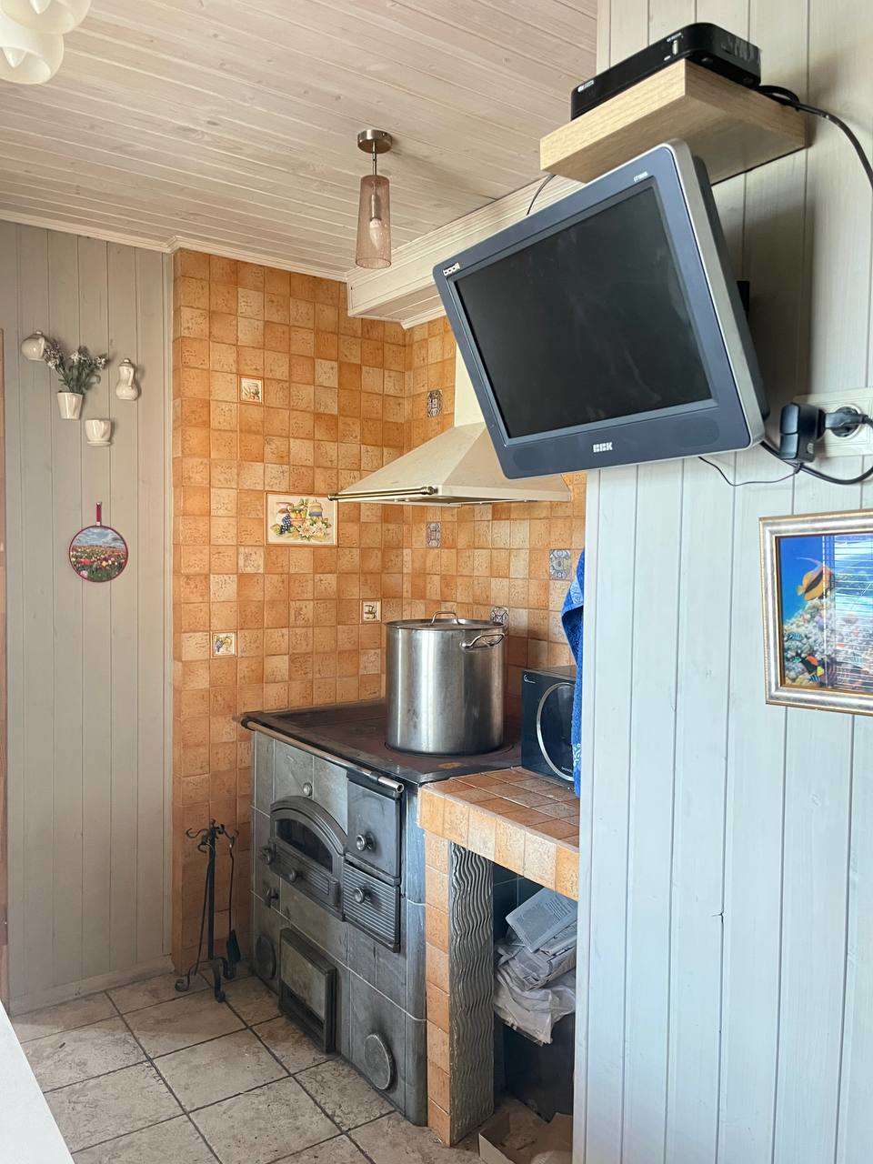 В кухне установлена финская дровяная печь с духовкой.