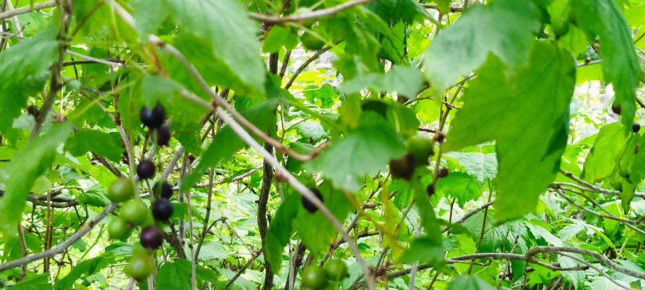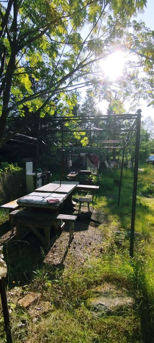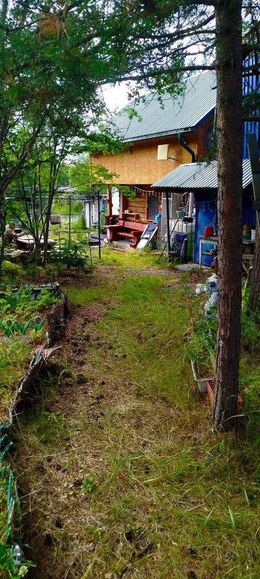 Участок ровный, много деревьев. Растут клубника, смородина, крыжовник, малина.