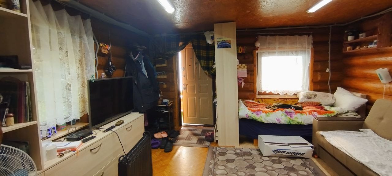 2) Дом 25 кв.м, 1991 года постройки, зарегистрирован. Ленточный фундамент. Печное отопление. Две спальни, кухня, прихожая.
