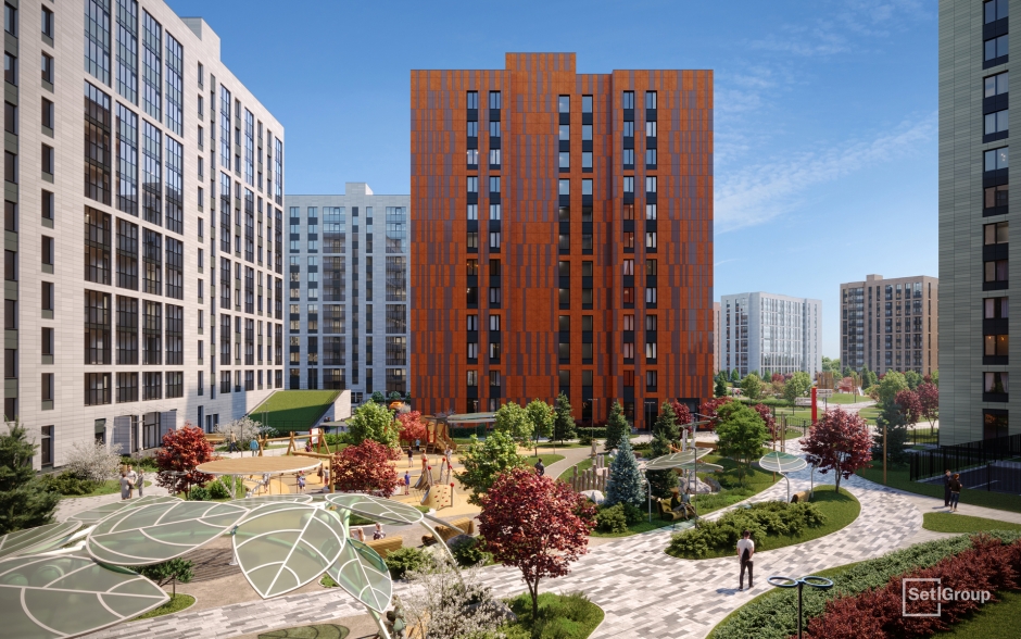 Доступ в жилой комплекс будет осуществляться через пять единых входных групп с авторским дизайном и лаундж-зонами. У каждого дома появятся закрытые благоустроенные дворы-патио. Единая концепция благоустройства предусматривает наличие огромного парка во дворе, разнообразных пейзажных зон, арт-композиций, беседок детских и спортивных площадок.