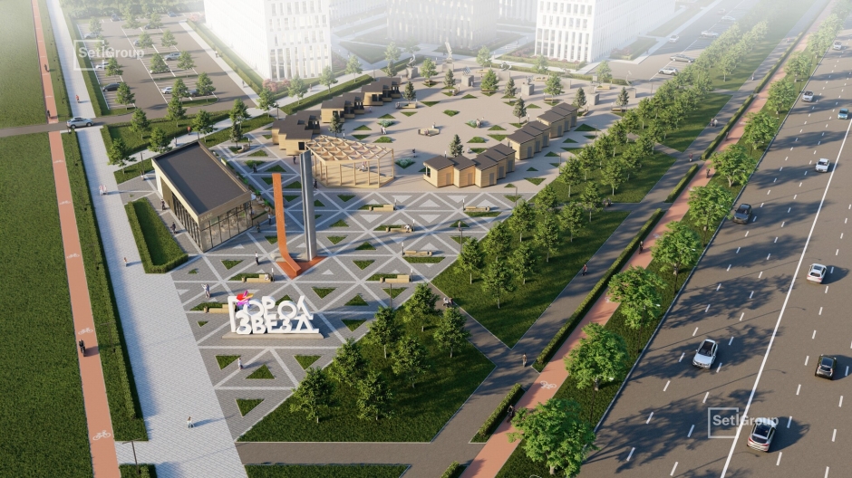 Центральная площадь Солнца — главная площадь проекта с фонтаном, зонами для проведения событий и выставок, ротондой с качелями, площадками для детей и уединенного отдыха, и танцевальной площадкой. А также площадь Созвездий — торгово-деловое пространство с возможностью проведения праздничных мероприятий и ярмарок.