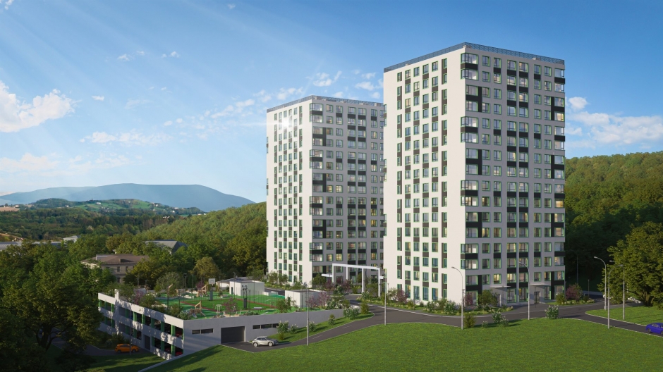 Два монолитно-каркасных 16-этажных дома выполнены в современном стиле.