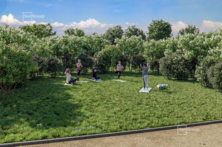 Для детей оборудована огромная площадка SetlKids с десятком горок, тоннелей и качелей. Для взрослых SetlSport – пространство для занятий спортом со специальным оборудованием, разработанным совместно с ведущими тренерами страны. А тихие закрытые внутренние дворы выполнены в пейзажном стиле, благодаря которому сохранены естественные природные линии.
